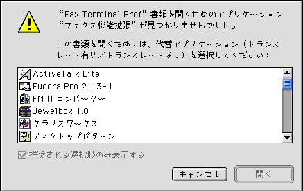 上記のようなダイアログが現われます。これはMacintosh Easy Openが、ファイルのTypeを読み、開けそうだと思われるアプリケーションをリスト表示しています。
