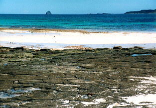畳石と呼ばれる亀甲模様の岩が並ぶ。