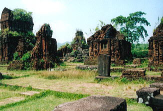 ジープの荷台に座り、起伏の激しいガタガタの山道をゆく。 まっすぐな陽射しに、ミネラル・ウォーターはお湯に変わる。 ホイアンから南西に45キロ。 ミーソン遺跡。 チャンパ王国の繁栄を今に伝える。 周囲を山に囲まれた盆地に、この聖地はある。 栄華の欠片が崩れ落ち、静かに横たわる。