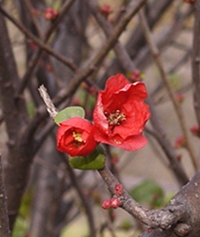 寒木瓜や紅一点と庭飾る 小川辰也 寒木瓜の訥訥として花蕾 伊藤瓔子