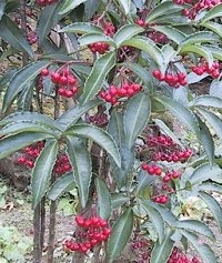 万両や詞すくなき俳句会 阿波野青畝 座について庭の万両憑きにけり 阿波野青畝 万両をたまたまつつむ茶の烟 阿波野青畝 万両のいとけなけれど所を得 阿波野青畝 万両は猫間障子の画のごとし 阿波野青畝