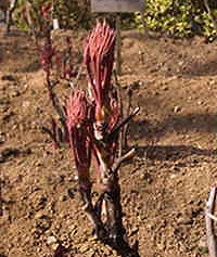 古寺を荘厳せむと牡丹の芽 阿波野青畝 さまざまに結べる印や牡丹の芽 阿波野青畝 昂りしうぐいす張りと牡丹の芽 阿波野青畝 時来れば百彩競ふ牡丹の芽 小路紫峽 牡丹の芽湖筆のごとく尖りけり 小路紫峽 鳥影の甲矢乙矢あり牡丹の芽 小路智壽子 黒ぼこの畝やはらかく牡丹の芽 小路智壽子