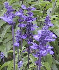 この写真はブルーサルビアです。一般には赤で、緋衣草とも呼ぶそうです。