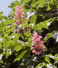この写真はベニバナトチの花です。橡の花は同形で白、街路樹としても利用されています。