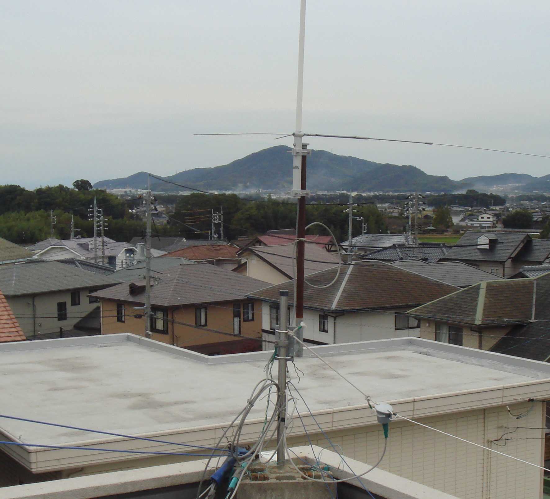 私は裕福な?アマチュア無線家とは異なり、タワーなどはなく屋根の上にルーフタワーを設置し、7,14,21,28MHz用のHB9CVと10,18,24MHzのDPを上げています。