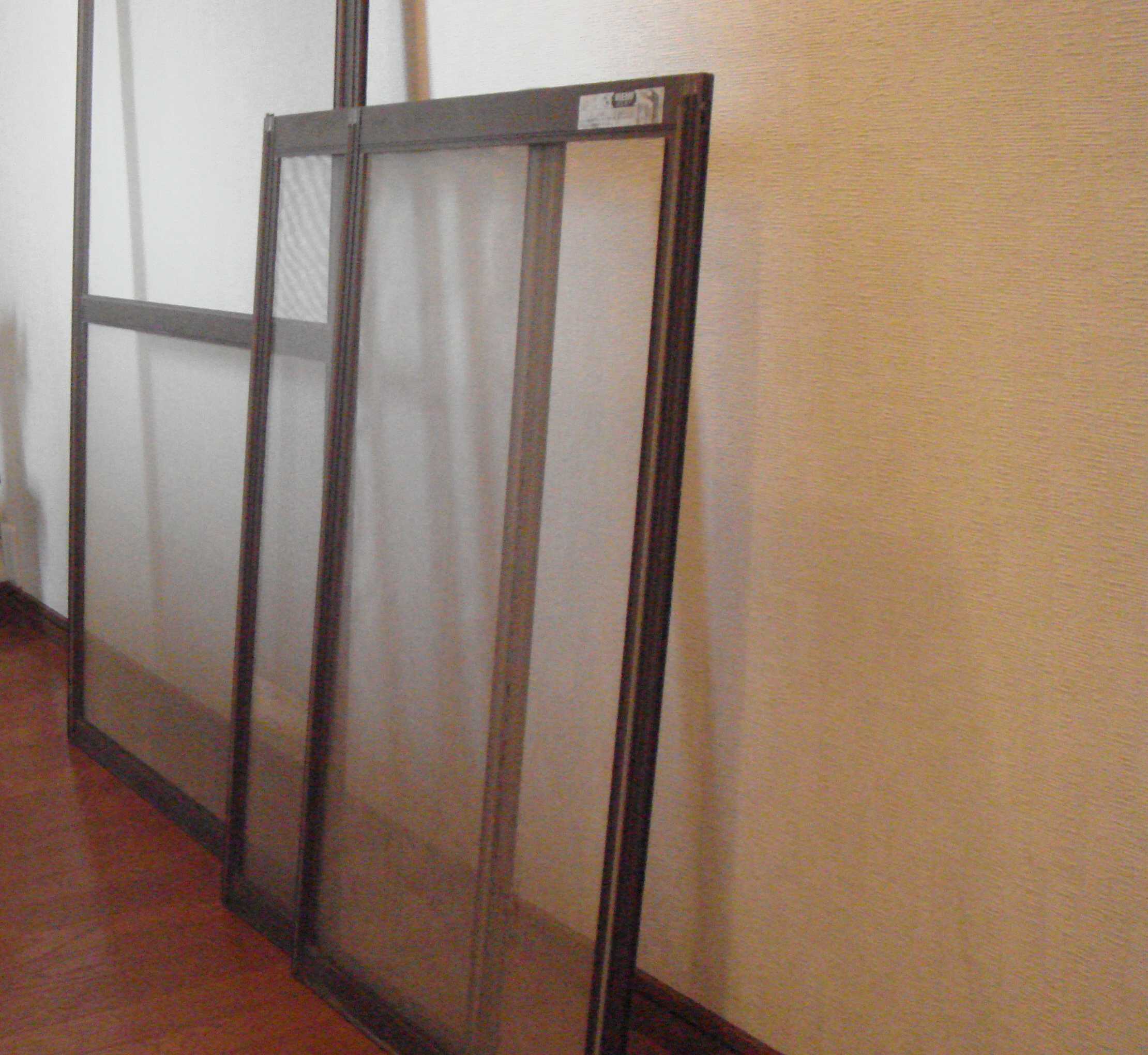 車のオーナーが保険に入っているとは限らないので網戸が飛んで行かないように?網戸を外しました。
