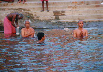 たくさんの巡礼者がここで朝日を拝み、ガンジス河の水を浴び礼拝をする。