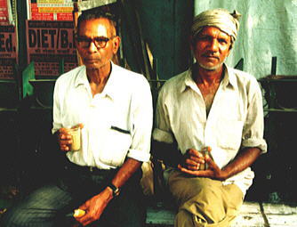 おじさん達と並んで座り、屋台のチャーイを飲む。