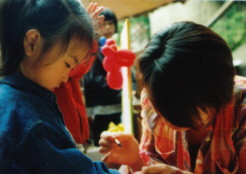 そして子供と触れあいながら絵を描くのは