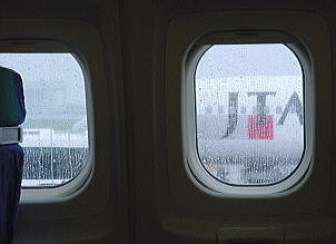 東京は梅雨入り。 雲の上の青空を南に飛んで着いた沖縄。 高度を下げるにつれ、雨が降り出し 機体は大きく揺れた。 豪雨・強風の為、着陸が出来ない。 滑走路を2度かすめて通り過ぎ 3度目に、やっと着陸。 初の沖縄本島上陸は、どしゃぶり。