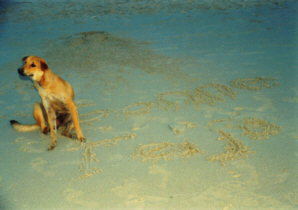 それぞれの国の言葉を、砂に書いて教え合いました。