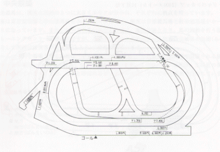 1周約1800Mの外コースで右回り。310Mの直線とゴール前に急勾配の