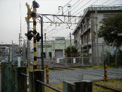 電車なんて通ってないのに踏切? 奥は、都営地下鉄浅草線の車両検査場。 |